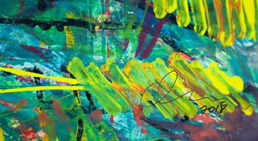 Oscar loves to experiment on a wide variety of media, from canvas to leather, metal and wood, where he paints, draws, sculpts, embroiders, pastes, rips. With the aid of pincers, aerosols, brushes and spatulas, as if they were lighting sparks, he plays with colors and shapes with passion, eagerness, sometimes with violence. All sorts of materials resonate together in a single countenance, emanating as a blinding, instinctive, even animal, force of expression. His works exude like flamboyant capsules of emotions fed by a multicultural, melting-pot universe. Indeed, Oscar does not construct; rather, he deconstructs and recomposes the abstract in his own, unique manner, creating a unique pictorial language, one of a highly pronounced power.